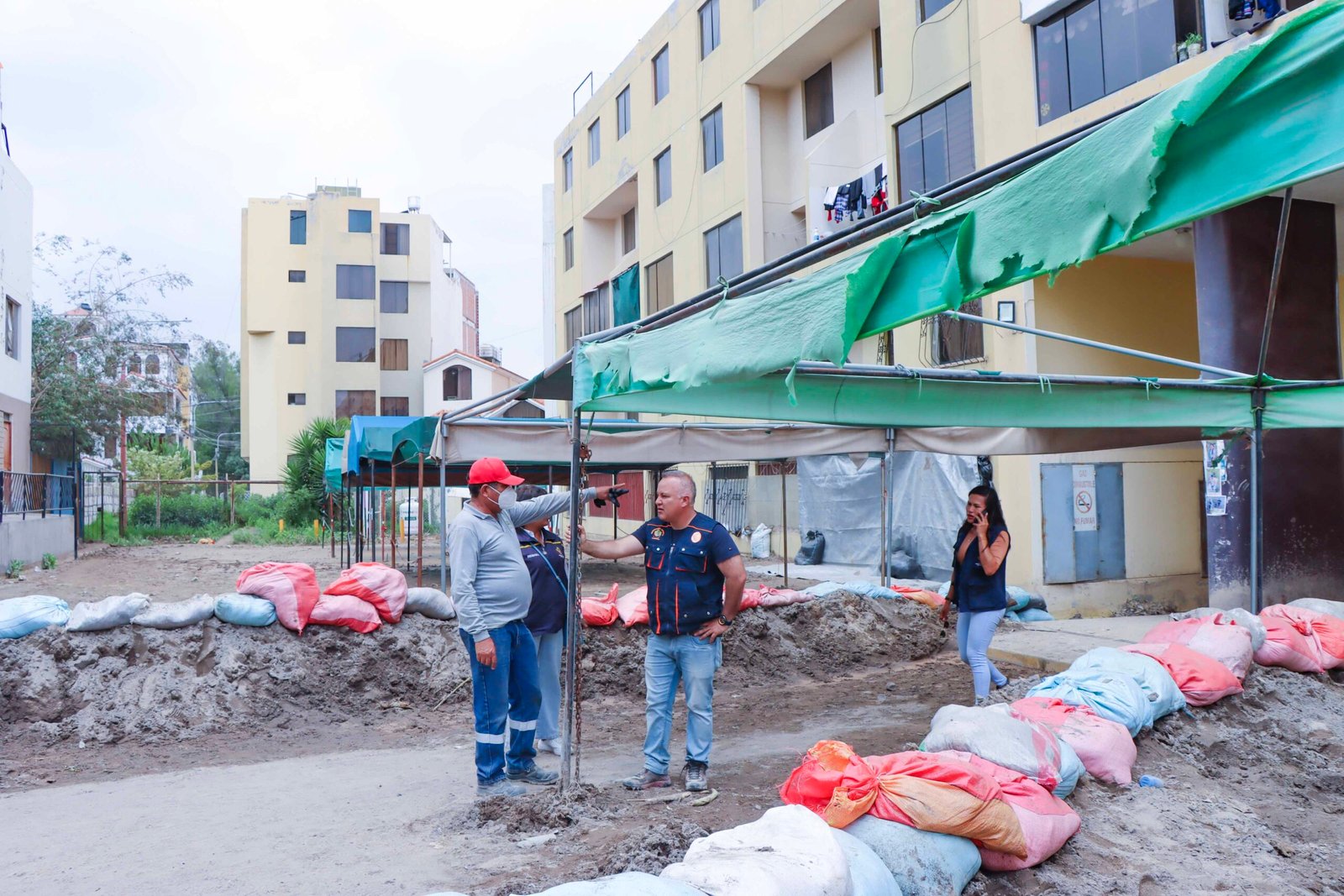 Durante la visita, la autoridad dialog贸 con vecinos del sector y con efectivos del Ej茅rcito Peruano que brindan apoyo en la zona, adem谩s de reconocer el trabajo del personal municipal, a quienes tambi茅n inst贸 a continuar trabajando de manera permanente en favor de la poblaci贸n afectada, priorizando acciones que permitan reducir riesgos y recuperar progresivamente las condiciones de seguridad.