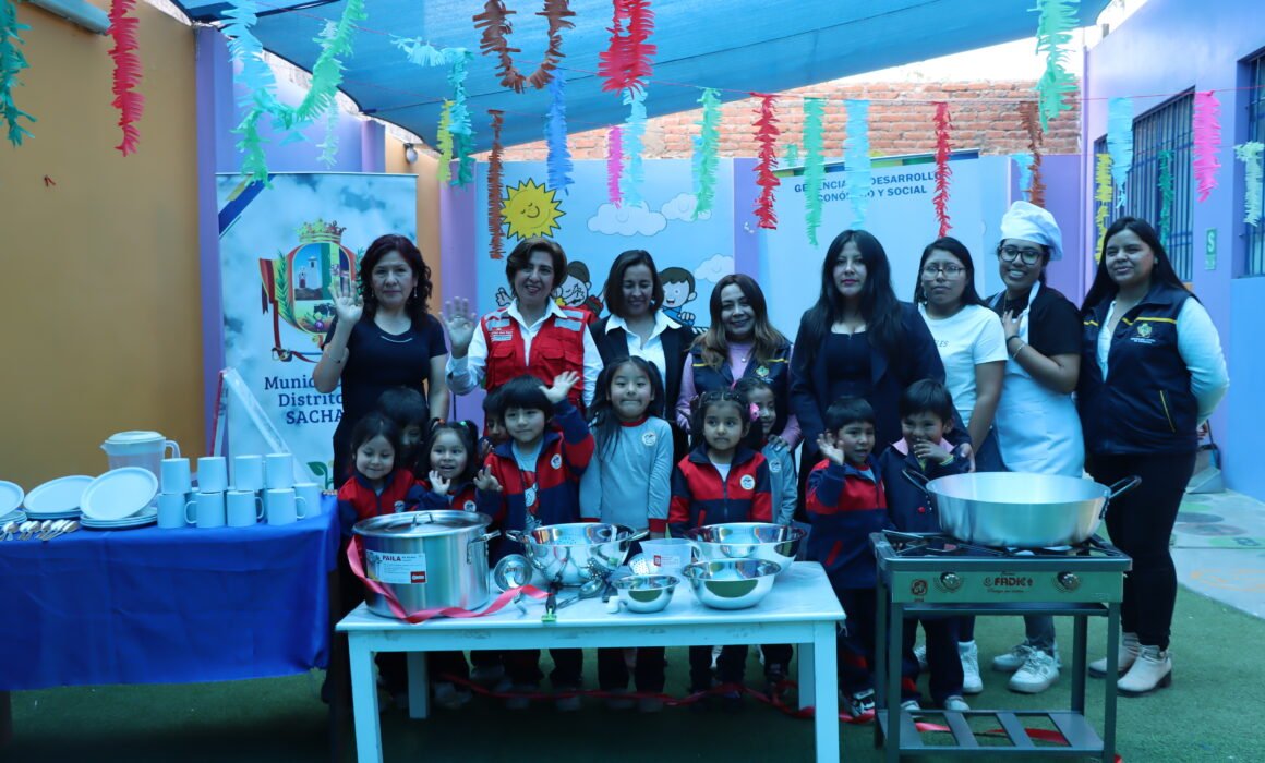La Municipalidad Distrital de Sachaca, a través de la Subgerencia de Desarrollo Económico, realizó la dotación de una cocina y menajería a la Institución Educativa Inicial Tito Chico, como parte del programa “Wasi Mikuna”, el cual forma parte de los indicadores del Sello Municipal, que tiene como finalidad fortalecer el servicio alimentario en los colegios del distrito.