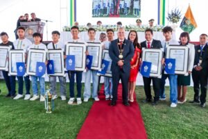 El trofeo fue entregado por el rector de la Universidad Catรณlica de Santa Marรญa (UCSM), Dr. Jorge Luis Cรกceres Arce, ademรกs del Escapulario Santa Gertrudis otorgado por la Municipalidad Distrital de Sachaca.