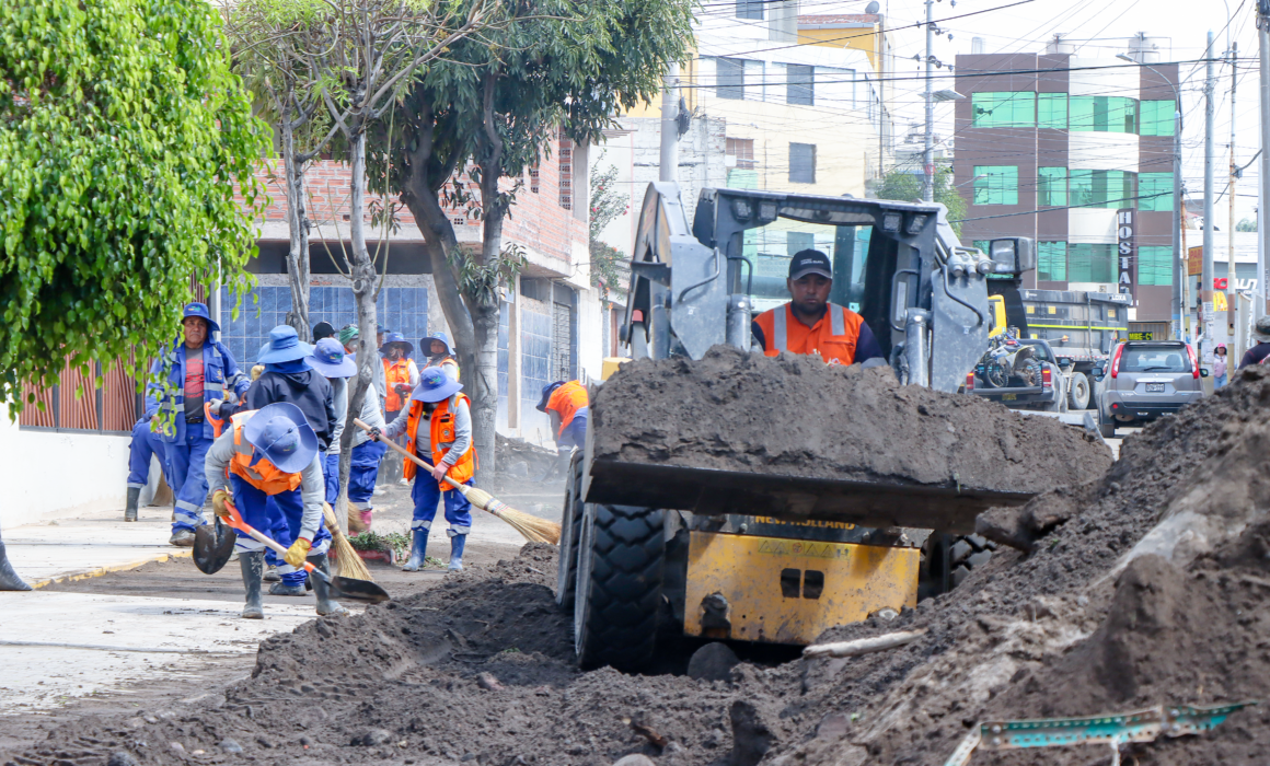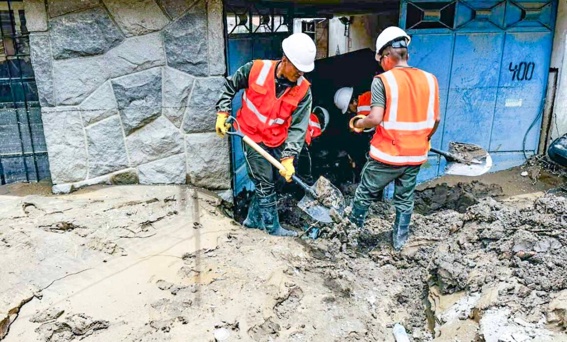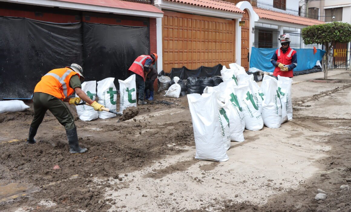 Efectivos del Ejército Peruano realizaron desde tempranas horas labores de apoyo en la prolongación de la avenida Metropolitana, a la altura de la parte posterior de la urbanización Asís y los edificios Bavaria, como parte de las acciones de respuesta frente a las precipitaciones pluviales registradas en el distrito.