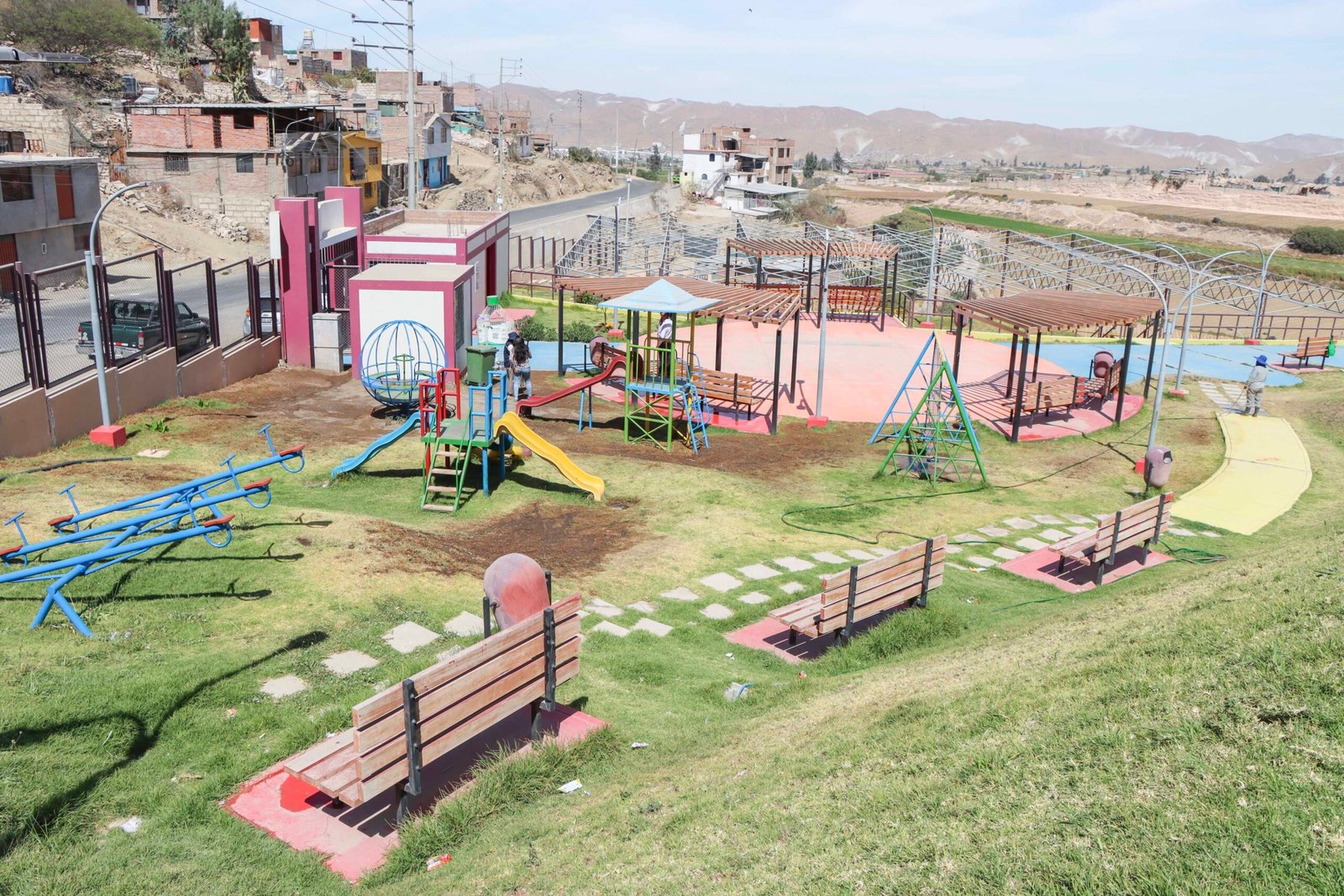 Entre las labores que se vienen ejecutando destacan: el pintado de la loza deportiva, la instalación de una nueva malla raschell, el pintado del cerco perimétrico metálico, así como el mantenimiento de los servicios higiénicos. Los trabajos contemplan también el pintado de graderías, la construcción de una estructura con tanque de agua para abastecer los baños, además del mantenimiento de bancas, glorietas y juegos infantiles.